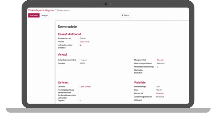 Example: Selling a rented server? ITISeasy.business automatically creates a supplier contract for procurement!