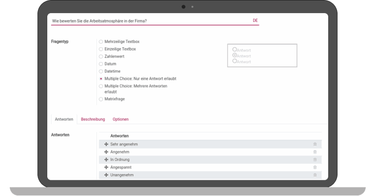 When it comes to question creation, you have the option to choose from various question types. Should employees fill in text boxes, select numerical values, or choose from multiple answer options? Decide based on the nature of the question and its content to derive opinions most effectively.